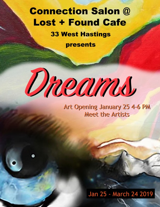Dreams – Jan-Mar 2019. Connection Salon group art exhibit. Lost + Found Café, Vancouver, BC.
