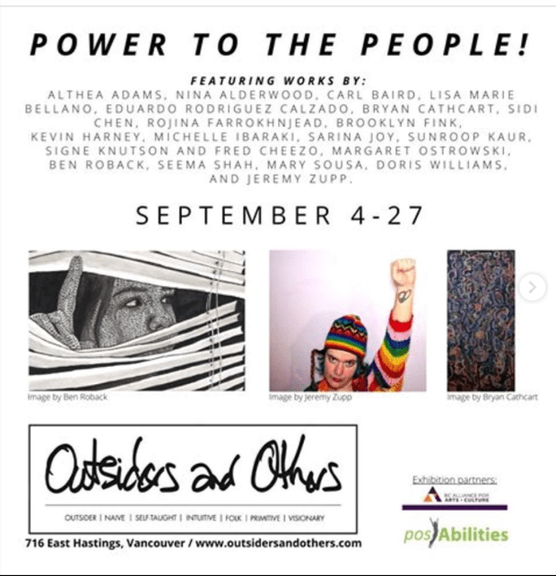 Power to the People – Sept 4-27, 2020. Group art exhibit, Outsiders and Others, Vancouver, BC. (Click bolded title to view entire exhibition online.)