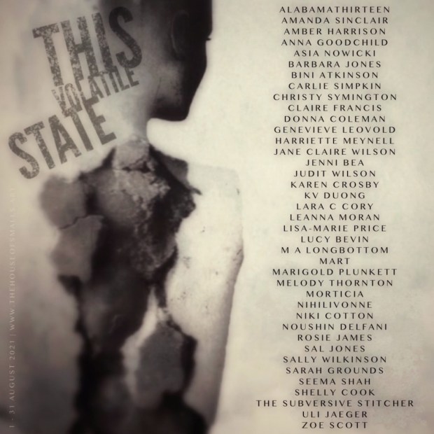 This Volatile State – Aug 1-31, 2021. Group exhibition, The House of Smalls dollhouse gallery (UK). Physical exhibition of small works, but only viewable online. (Click bolded title to view entire exhibition online.)